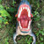 Die T-Rex Kopf Dinosaurier Figur ist mit wetterfesten Acryllack handbemalt